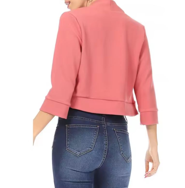 Women Short blazer Top Spring Summer 3/4 Sleeve Cropped Causal